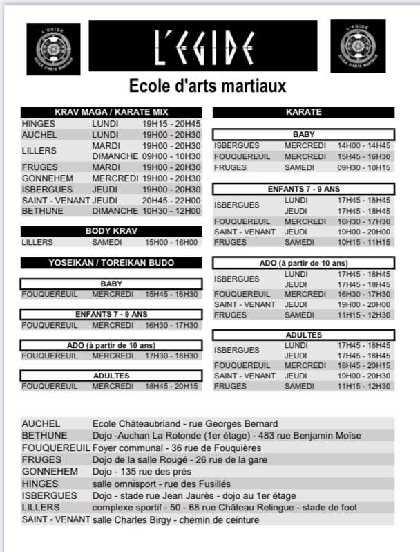 L'Égide est une structure qui se veut pluridisciplinaire mais, actuellement, seul le Krav Maga, le Yoseikan Budo, le Body Krav et le Karaté y sont enseignés.